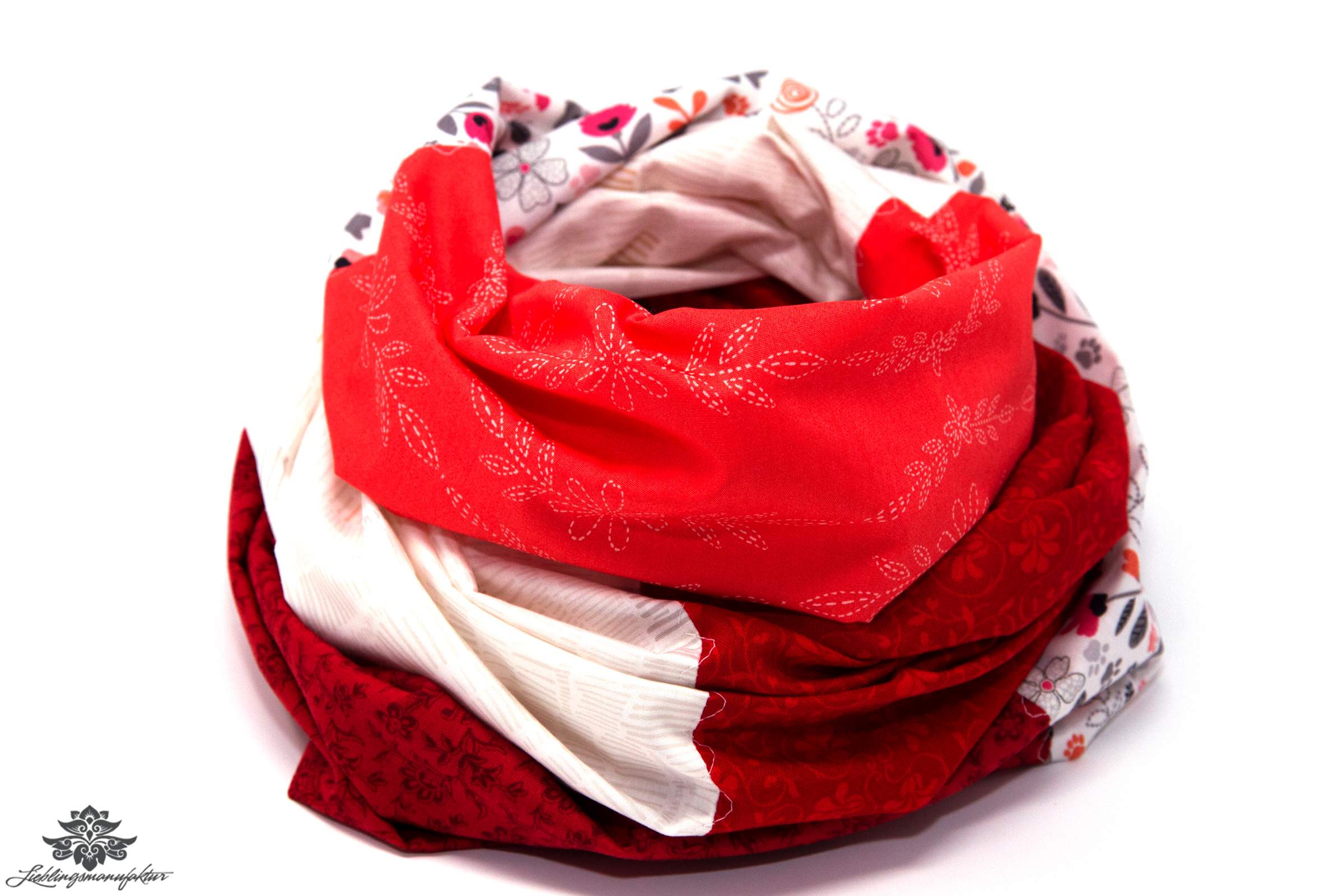 Loop Schal Rot | Eur 9,95 + eur 3,45 versand. Erhältlich in den größen s, m, l und auf maß. Wunderbar angenehm zu tragendes material mit sehr guter haptik. Die verpackungseinheit beträgt 5 stück pro karton. ༺ ༺ unikat ༺ ༺ einzigartiger und zeitloser loop in ivory mit hübschem blümchenprint in gedecktem rot, lindgrün und hellblau.